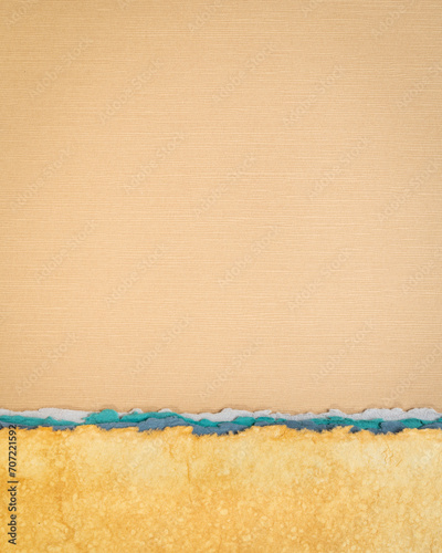 abstract paper landscape in earth and blue pastel tones - collection of handmade papers, vertical poster