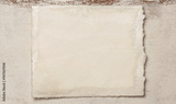 Beige and nacre silver frame painting paper empty card on wood wall. Abstract texture copy space neutral grunge background.