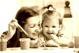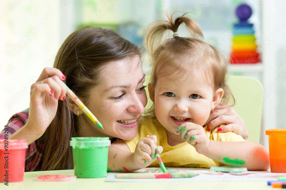 cute mother teach her daughter kid to paint