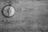 old compass on vintage wooden table top view