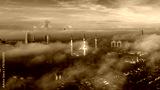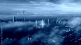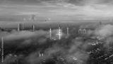 Aerial view of Shah Alam city skyline during low clouds and misty morning.
