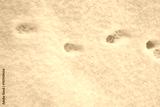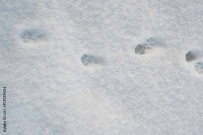 Cat tracks in the snow.