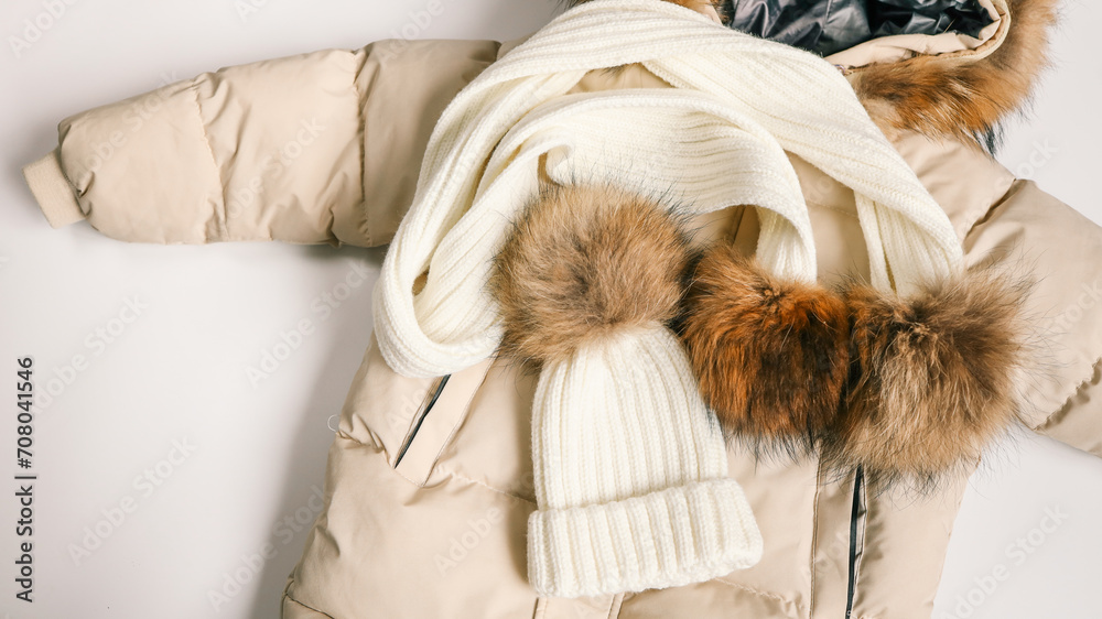 Set of children's winter clothes top view, advertising concept, style and fashion