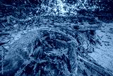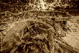 Beautiful green moss on the big tree roots, Big tree draped with Club Moss in Rainforest.