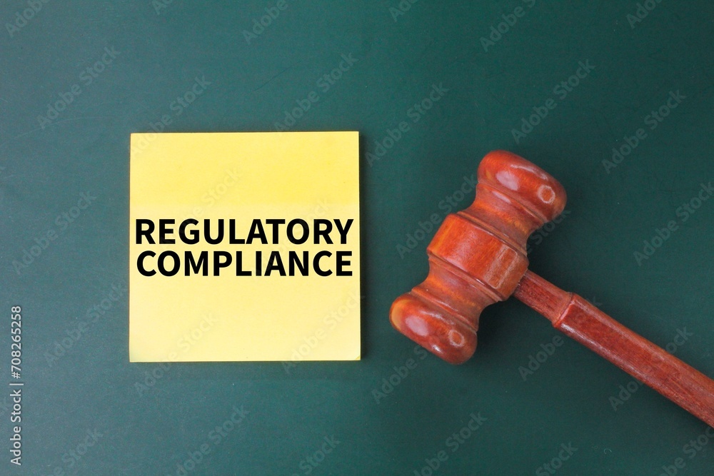 judge's hammer and colored paper with the word Regulatory compliance. specifications relevant to its business processes.