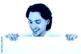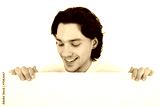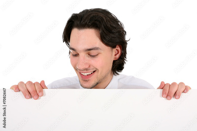 Businessman holding blank poster
