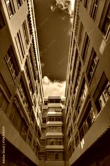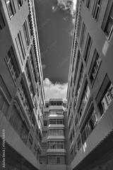 Black and white image of modern apartment building in Las Palmas de Gran Canaria
