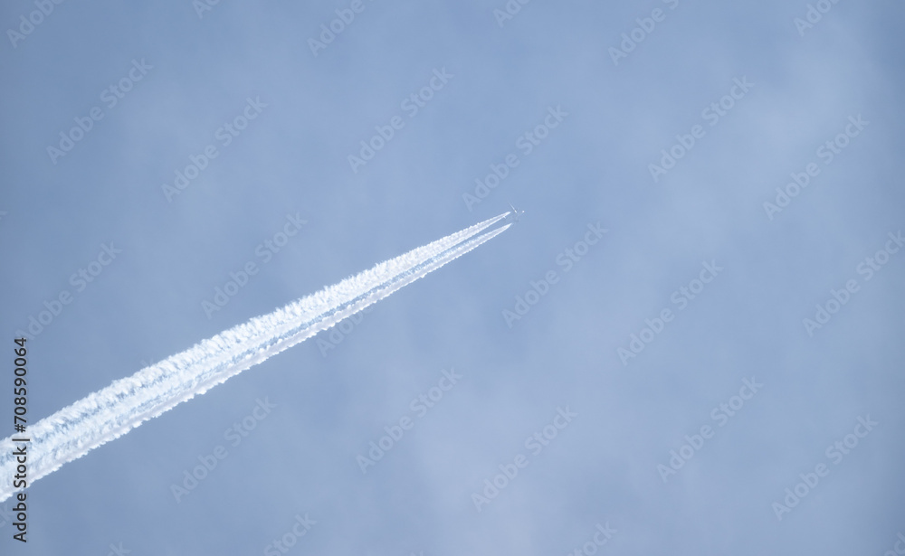 double trail in the sky of an airplane
