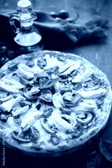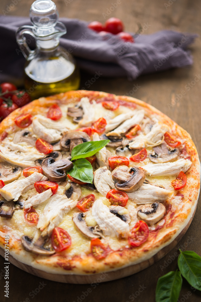 Pizza with chicken and mushrooms