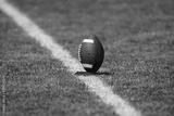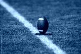 American football resting on a kicking tee stand ready to be kicked to start off a football game. The football game is ready to begin. Time for Kickoff