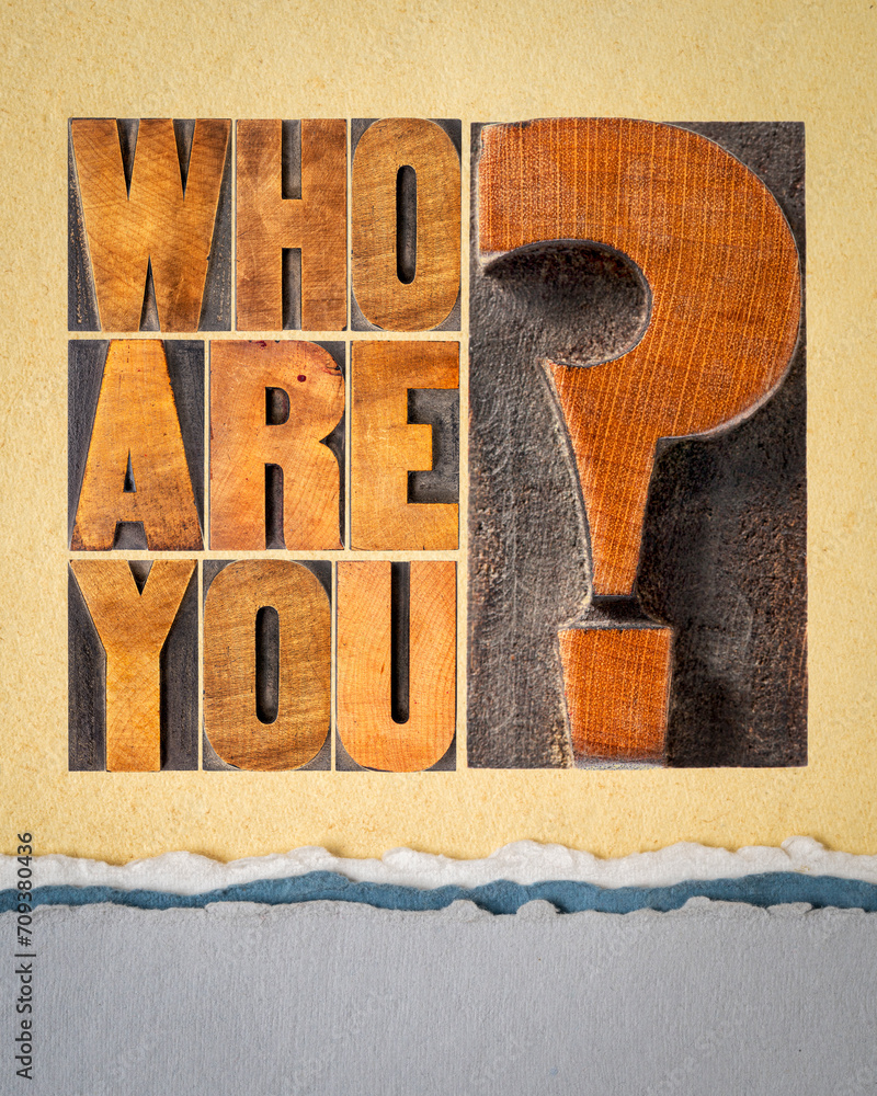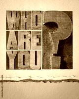 who are you question - word abstract in letterpress wood type blocks on art paper, identity and personal development concept