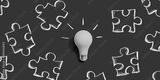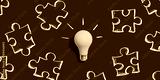 Jigsaw puzzle with a yellow light bulb - flat lay