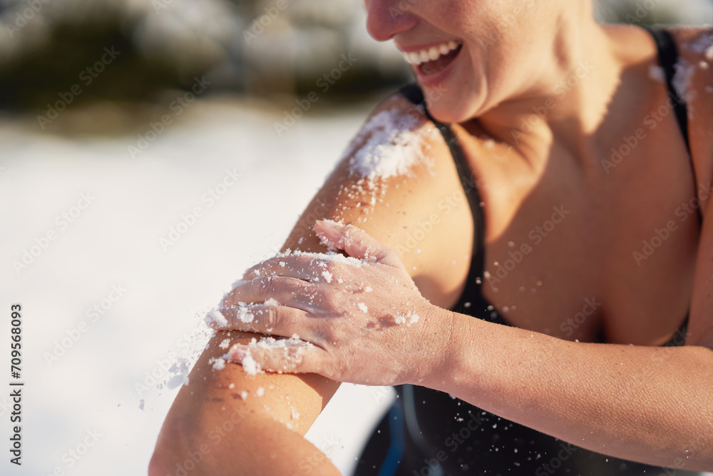 Picture of woman having fun on snow in winter