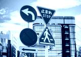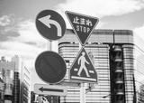 Traffic signs on City street Turn left Crosswalk Stop Pedestrian caution signage direction for Safety