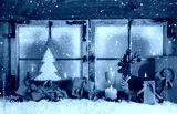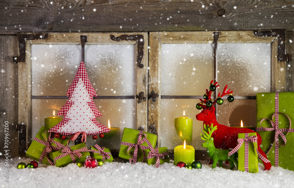 Weihnachtskarte: Dekoration Weihnachtsfenster in grün und rot
