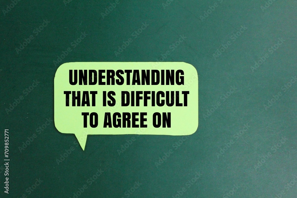 colored paper with the word understanding that is difficult to agree on. the concept of misunderstanding. difficult discussion