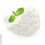 Cottage cheese isolated on white background closeup. Fresh grainy cottage cheese or feta with mint leaf for package design