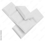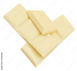 White chocolate pieces isolated on white background. Chocolate Package design elements. Top view. Flat lay.