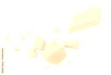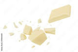 White Chocolate explosion isolated on white background. Shattering Chocolate pieces package design..