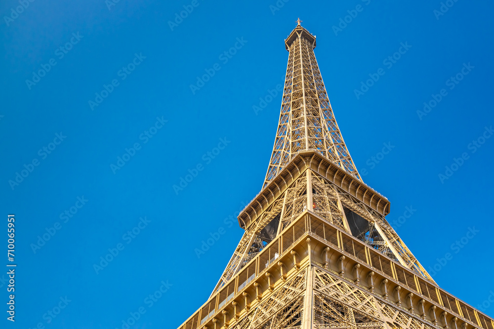 Eiffel Tower on a summer day with a clear blue sky in Paris, France