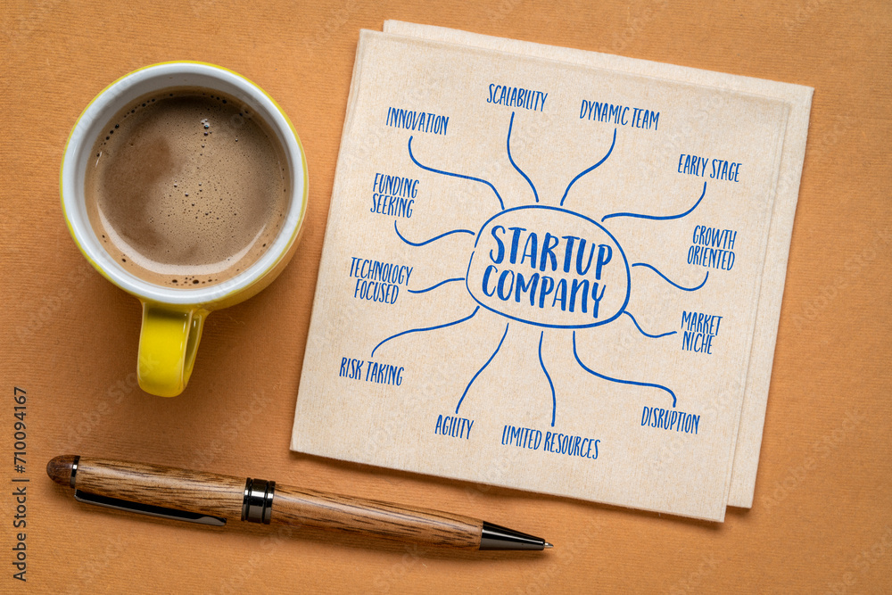 startup company - infographics or mind map sketch on a napkin, new business concept