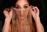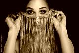 Photo of msyterious chic lady middle easter shaman cover face with rich veil do ritual love magic for marry sultan