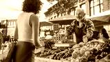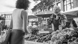 Young Beautiful Customer Shopping for Fresh Natural Vegetables for a Mediterranean Dinner. Black Female Buying Bio Tomatoes and Ecological Local Garlic From a Happy Senior Street Vendor