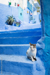 Cats on the street of beautiful city Chefchaouen, Morocco