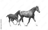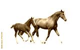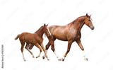 Chestnut horse and its cute foal running fast