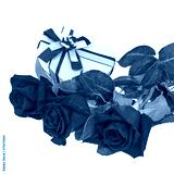 Gift Box in Shape of Heart and Bouquet from Roses.
