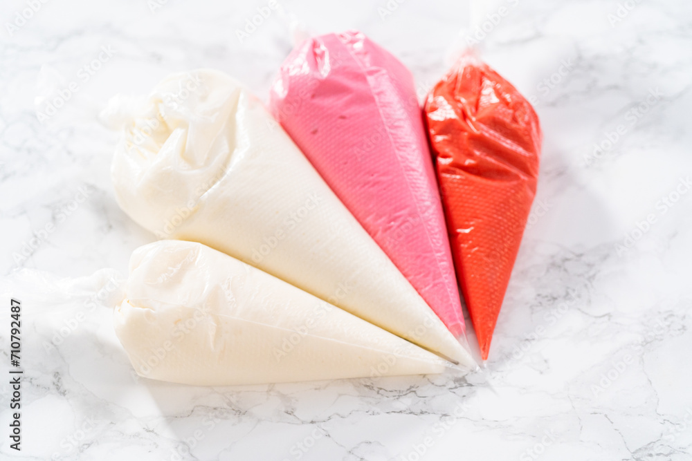 Homemade royal icing for decorating heart-shaped sugar cookies