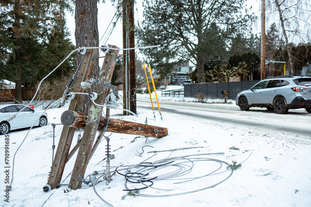 A downed power line from intense winter storm.