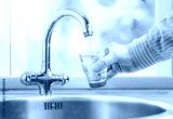 Man pours water from faucet into glass in kitchen