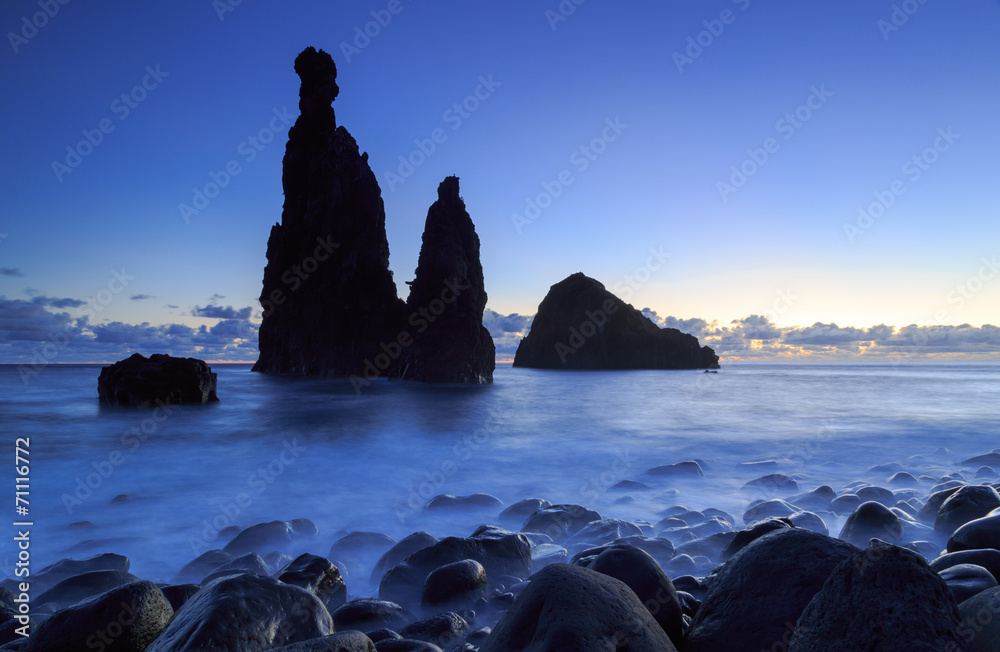 Rocks in the Atlantic Ocean at the Madeira coast.