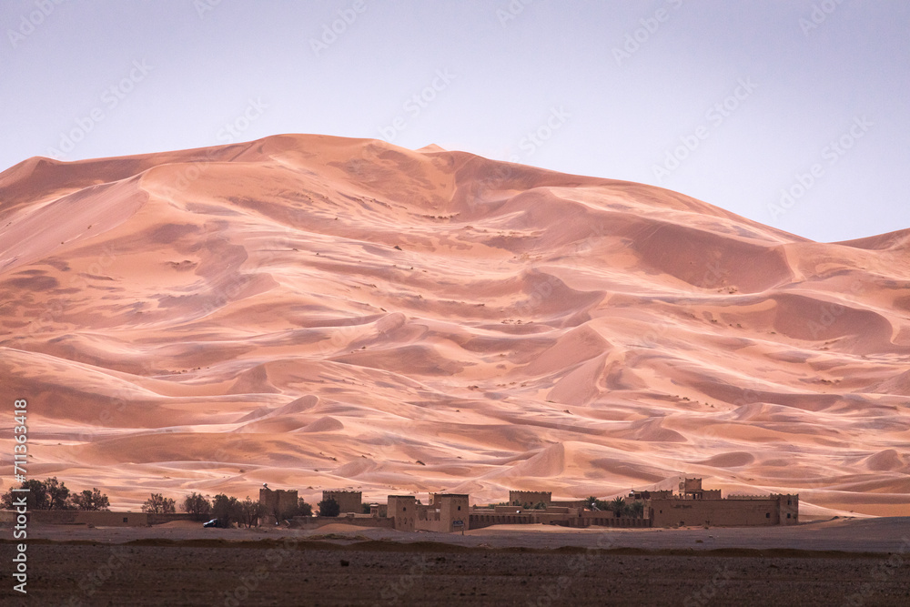 Colorful desert dunes with beautiful background in Sahara, Merzouga, Morocco