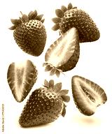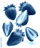 Flying in air strawberries and slices of strawberry isolated on white background.