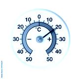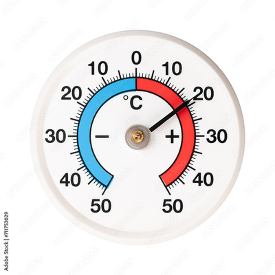 Spiral strip bimetallic thermometer, with degree graduation in Celsius. Temperature changes expand or decrease the two metal strips differently, creating a bending effect and the strip coils.