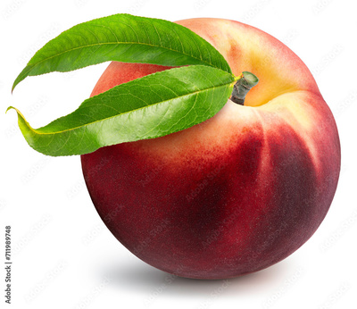 Yellow Peach fruit with leaf isolated on white background, Fresh Yellow Peach on White Background With clipping path.