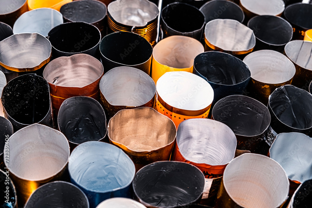 Aluminum and plastic wine bottle caps from different wine producing brands