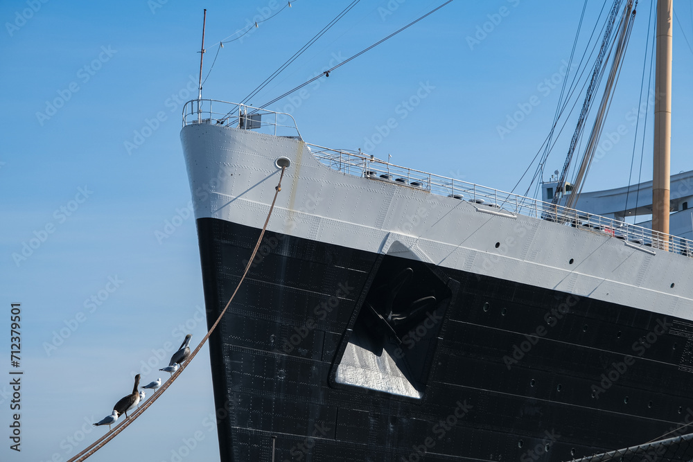 Historic ocean liner cruiseship cruise ship in port of Long Beach, California USA