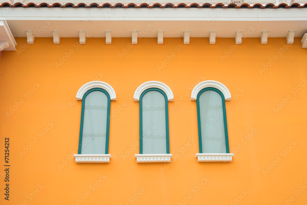 Round arch window on the orange wall