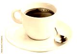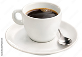 xícara com café expresso quente acompanhado de colher isolado em fundo transparente