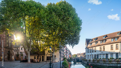 Le Petite France, the most picturesque district of old Strasbourg. Half-timbered houses along the channel of th Ill river.