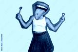 Modern design artwork postcard poster sketch of curious girl with big mouth taste lick chupa chups lollipop isolated. Contemporary art collage. Alternative sweets. Real jam, so delicious