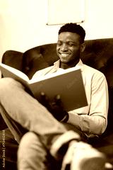 Young man engrossed in studying, surrounded by books at home, embracing the comfort of a modern lifestyle.