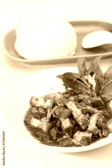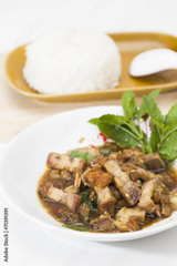Fried with pork and crispy basil leaf