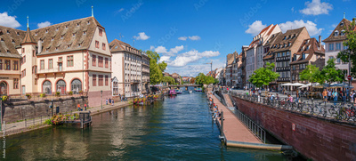 Le Petite France, the most picturesque district of old Strasbourg. Houses along the Ill river channel.