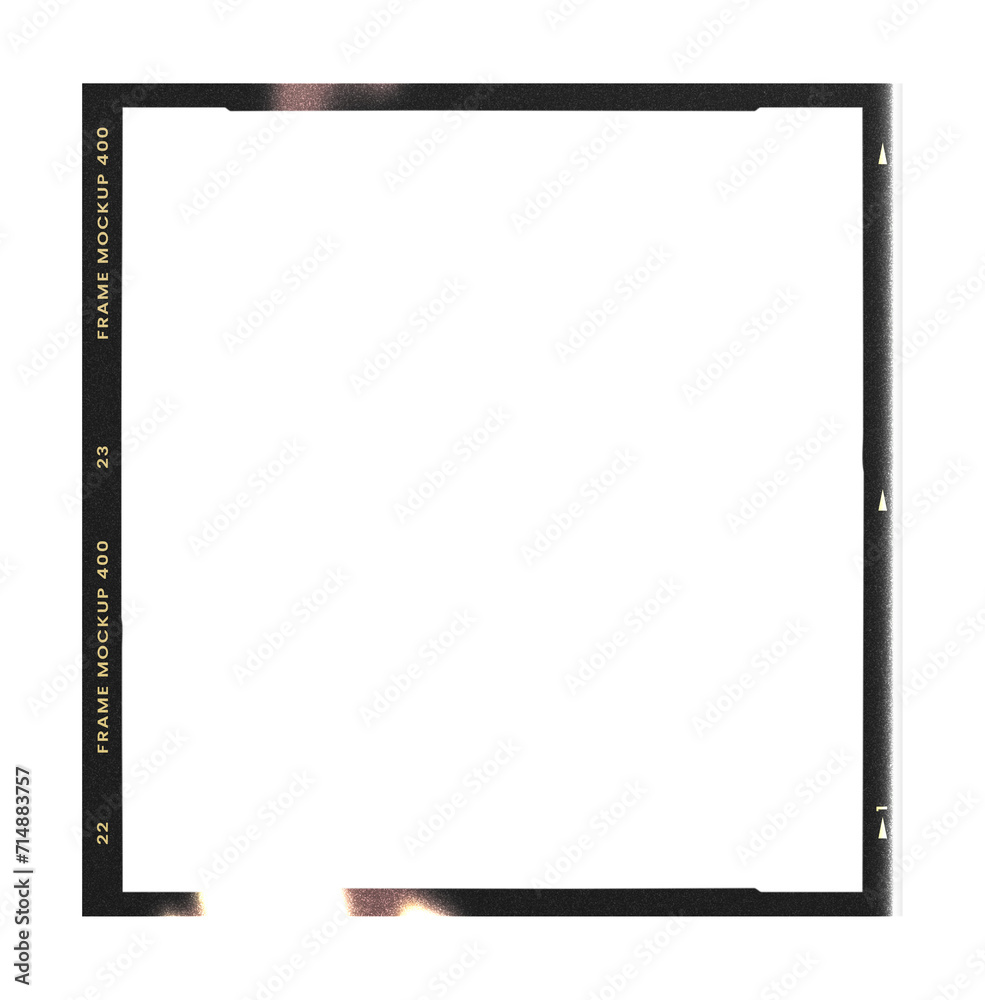 Camera transparent film strip mockup, isolated on white background template frame, real high-res 35mm photo scan analogue sheet negative