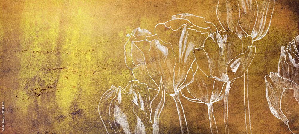 tulpen zeichnung blumen illustration trauer konzept karte konturen gold