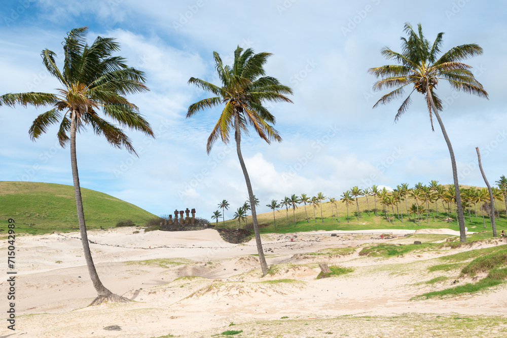 Playa de Anakena en Rapa Nui, Isla de Pascua, Chile